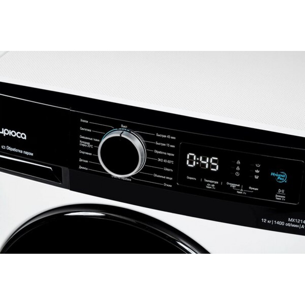 | Загрузка белья12 кг | Максимальная скорость отжима1400 об/мин |