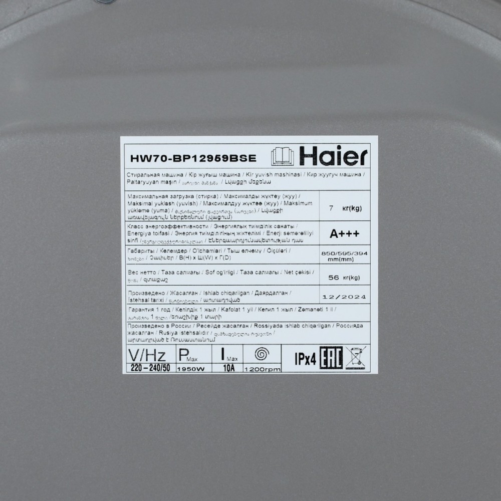 Описание Стиральная машина HAIER HW70-BP12959BSE