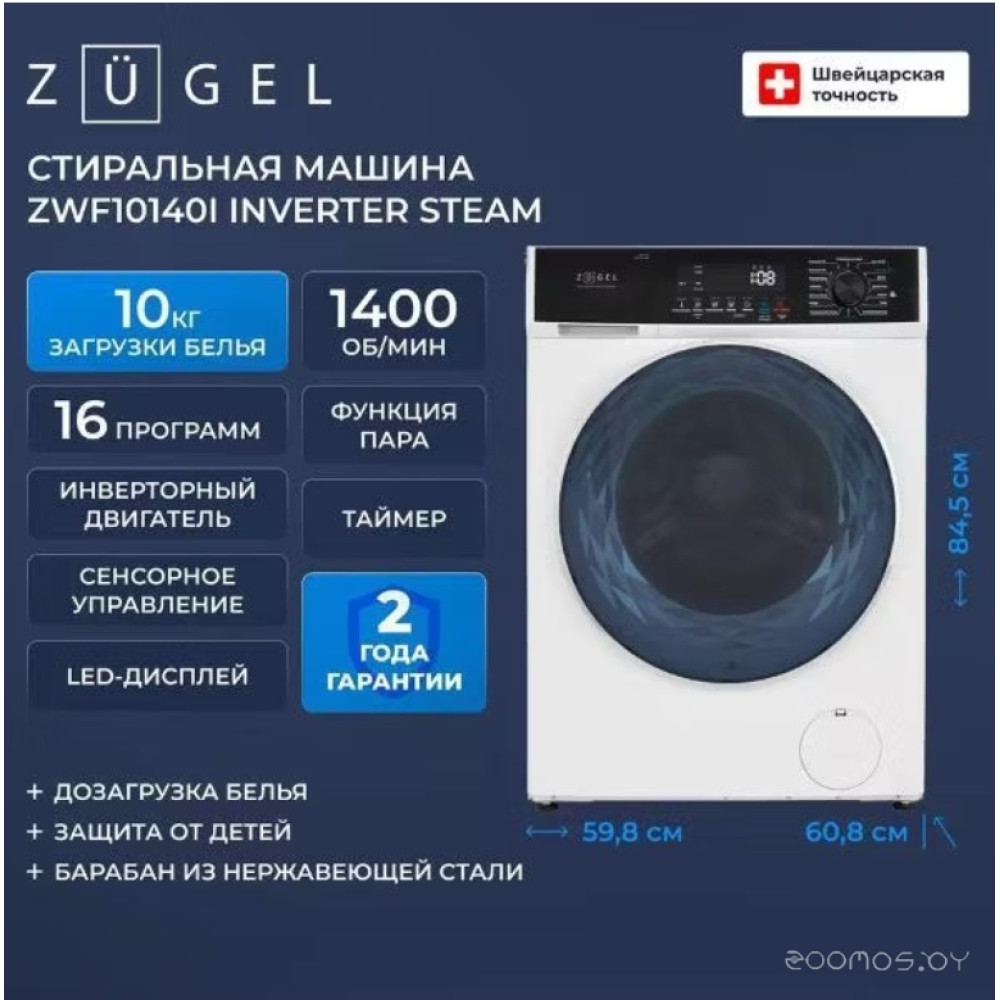 Описание Стиральная машина ZUGEL ZWF10140I Inverter Steam