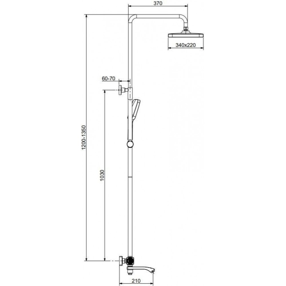 | Диаметр (ширина) верхнего душа | 340 мм |