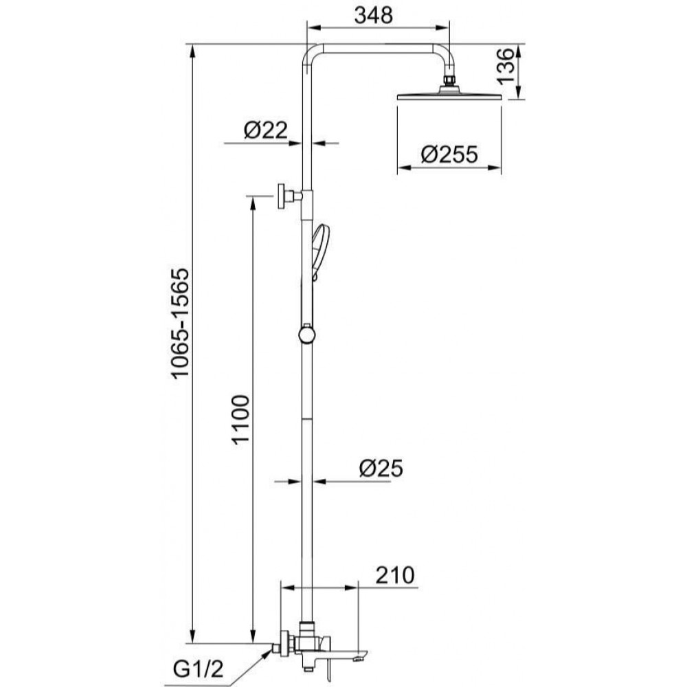 Вылет верхнего душа: 348 мм
