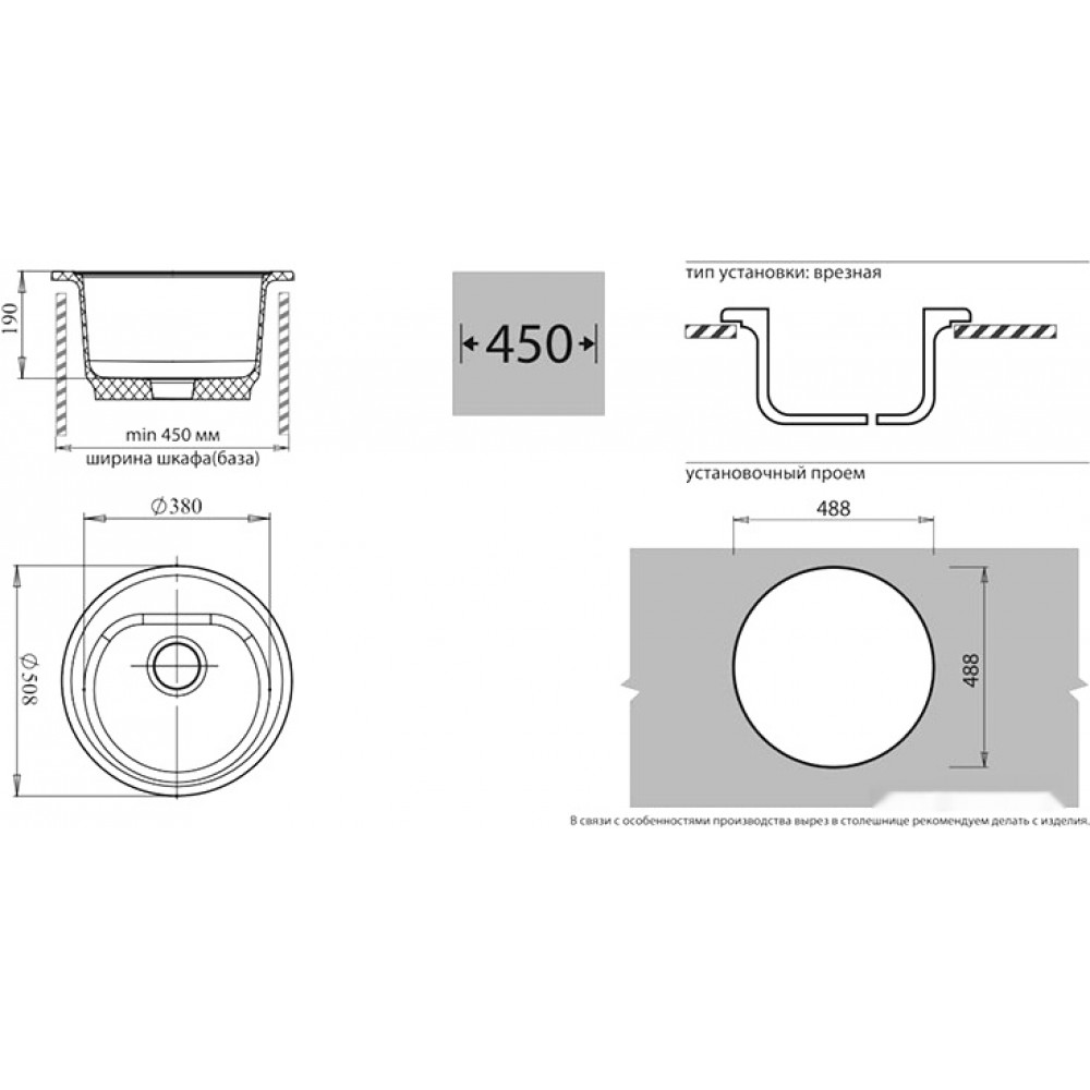 | Установка | над столешницей |