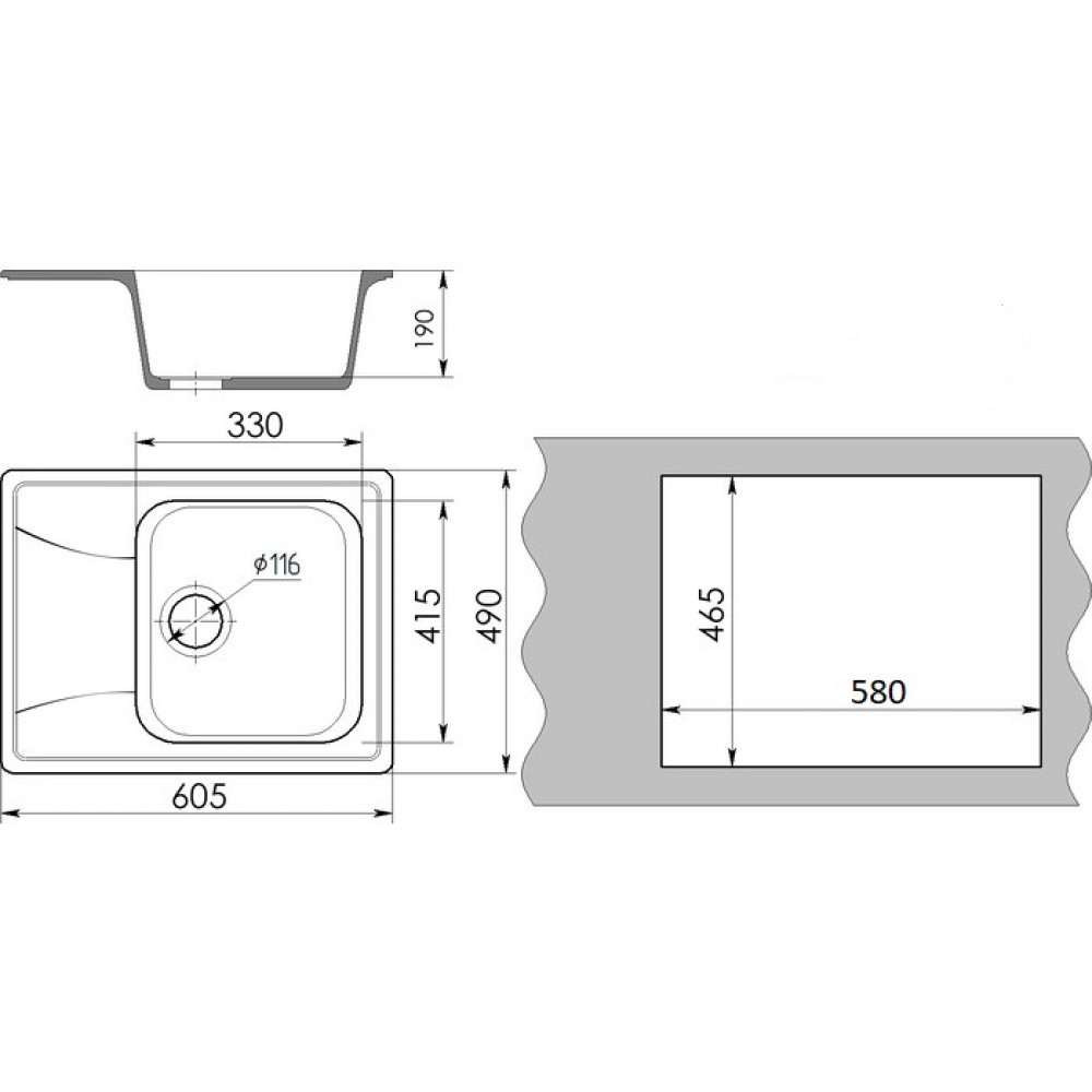 | Установканад столешницей | Формапрямоугольная |
