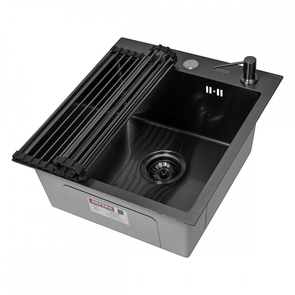Описание Кухонная мойка ARFEKA ECO AR 450*500 роллер-мат, дозатор BLACK +RM AR+DS AR