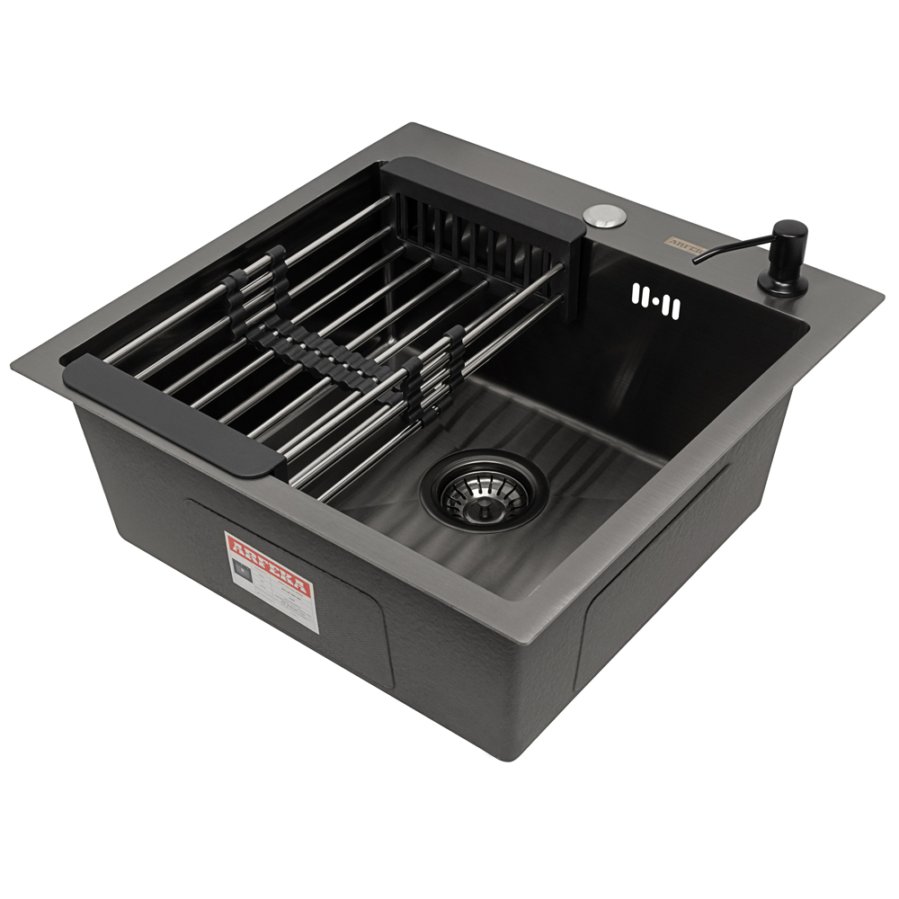 Описание Кухонная мойка ARFEKA ECO AR 500*500, коландер, дозатор BLACK +CL AR+DS AR