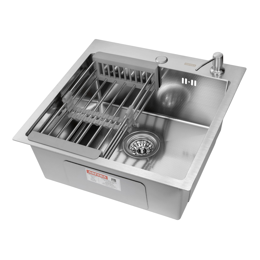 Описание Кухонная мойка ARFEKA ECO AR 500*500, коландер, дозатор SATIN DECOR +CL AR+DS AR