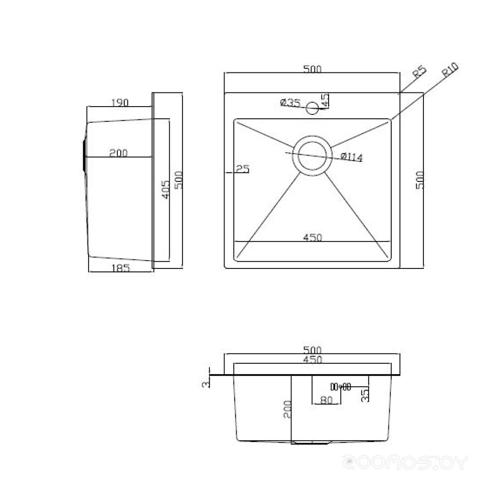Технические характеристики Кухонная мойка ARFEKA ECO AR 500*500, роллер-мат, дозатор BLACK DECOR +RM AR+DS AR