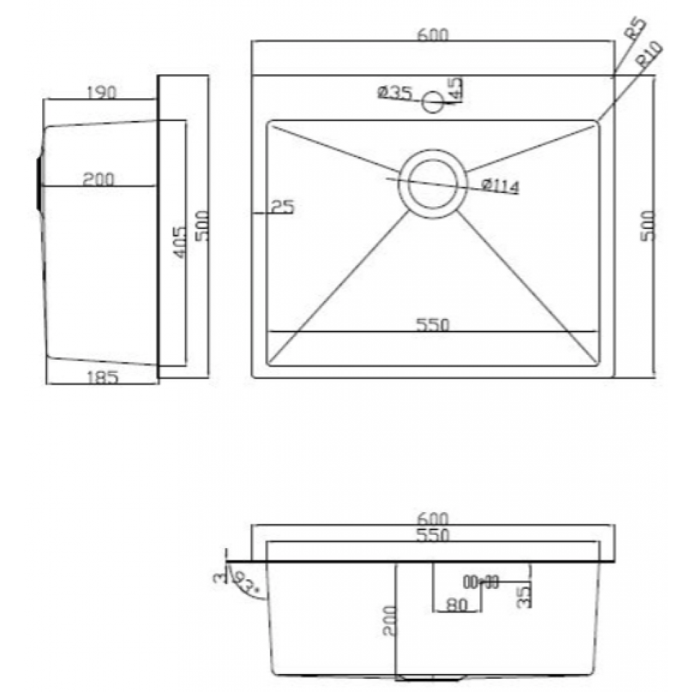 Технические характеристики Кухонная мойка ARFEKA ECO AR 600*500 SATIN DECOR