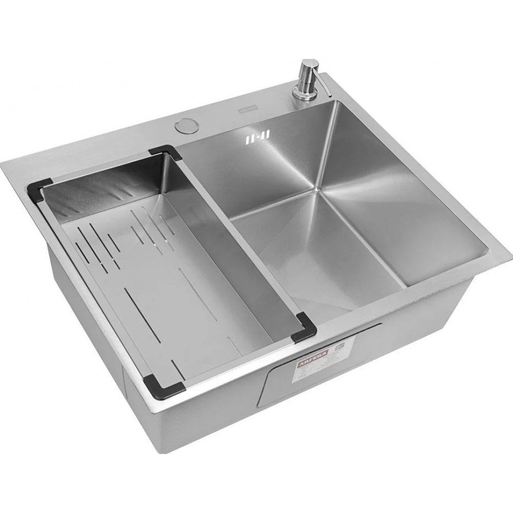 Технические характеристики Кухонная мойка ARFEKA Eco AR мойка 600*500, коландер G, дозатор Satin Decor Volcanic +CL AR G+DS AR