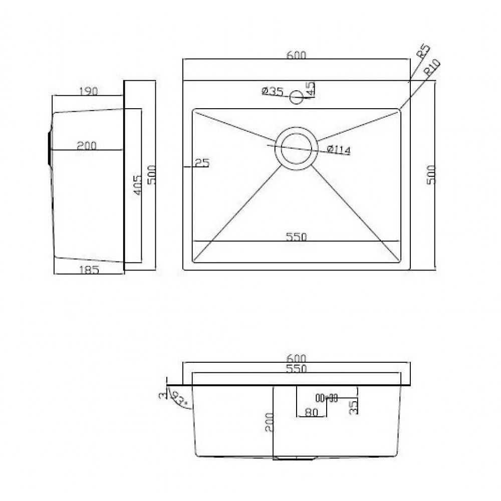 Диаметр сливного отверстия: 3.5 "