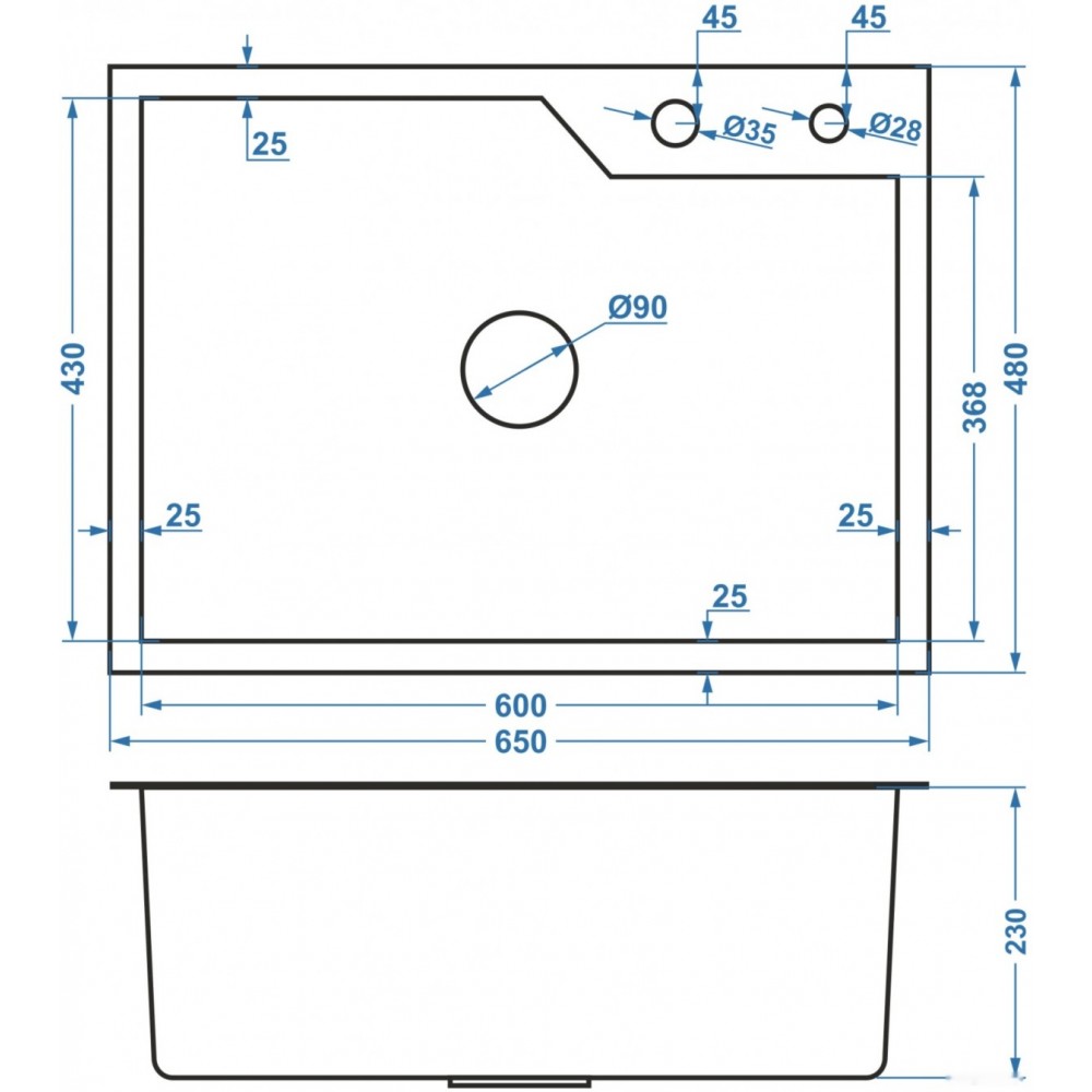 Глубина мойки: 65 см