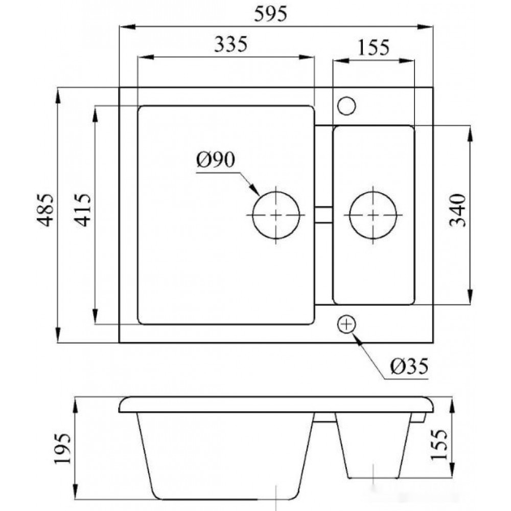 Ширина мойки: 59.5 см