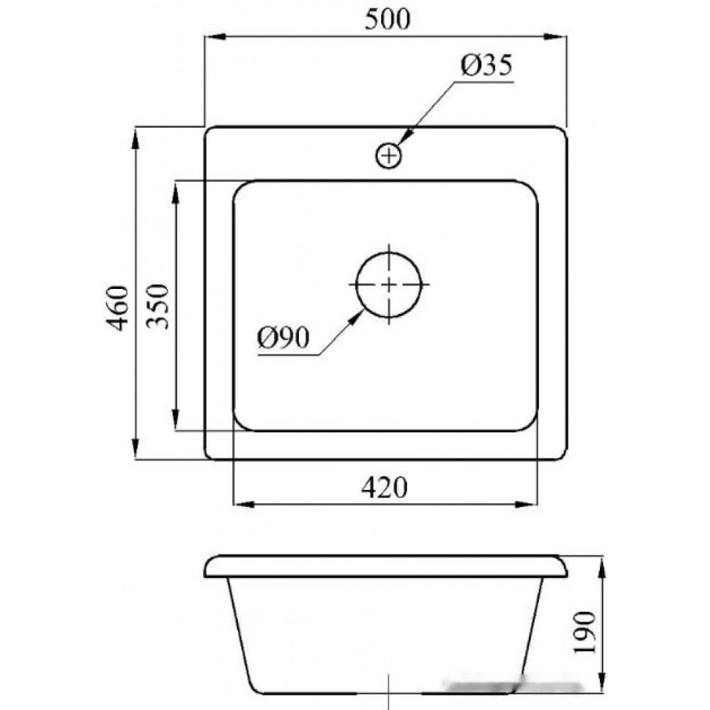 | Установканад столешницей | Формапрямоугольная |
