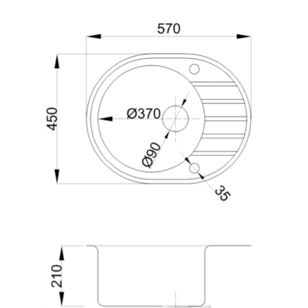Диаметр сливного отверстия: 3.5 "