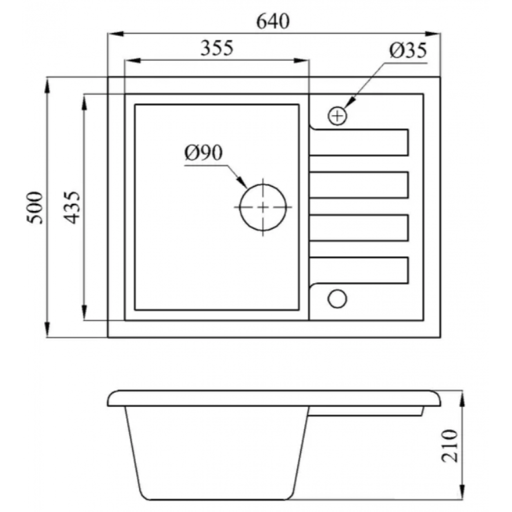 Ширина мойки: 64 см
