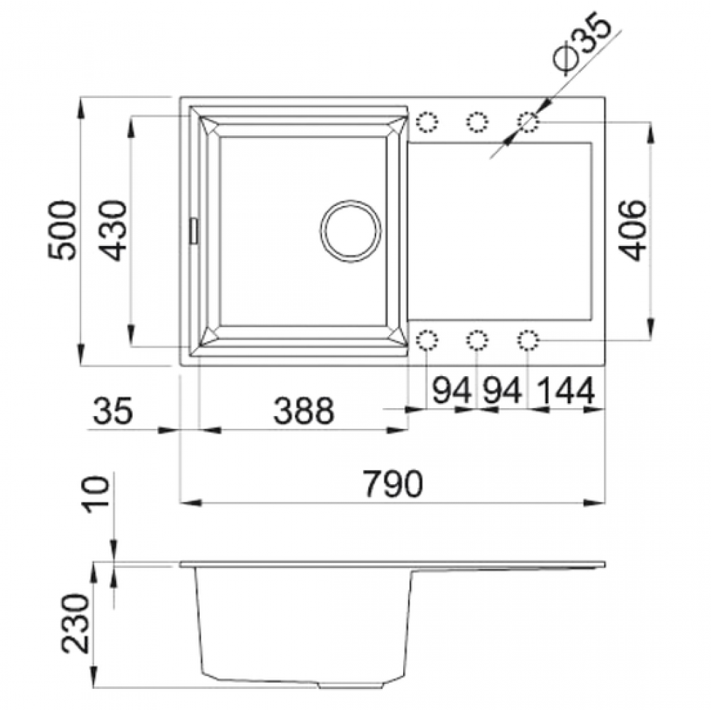 | Глубина монтажного отверстия под мойку | 48 см |