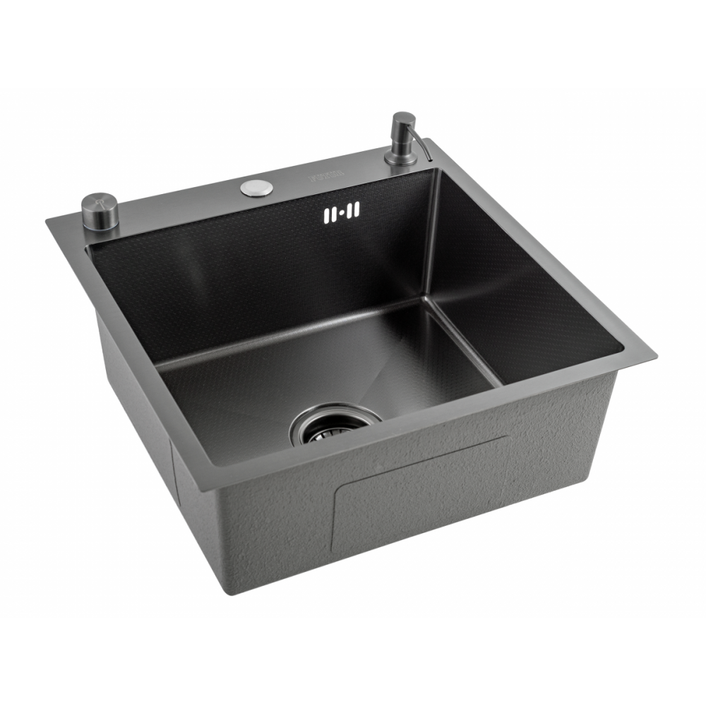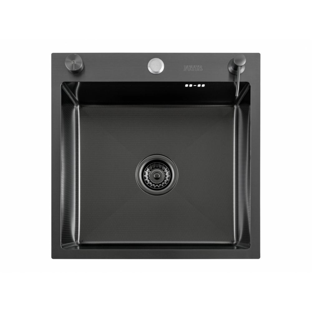Описание Кухонная мойка FUTUR FK 5050 Eco Embossing Pop-up Mixer plus (Black Nano)