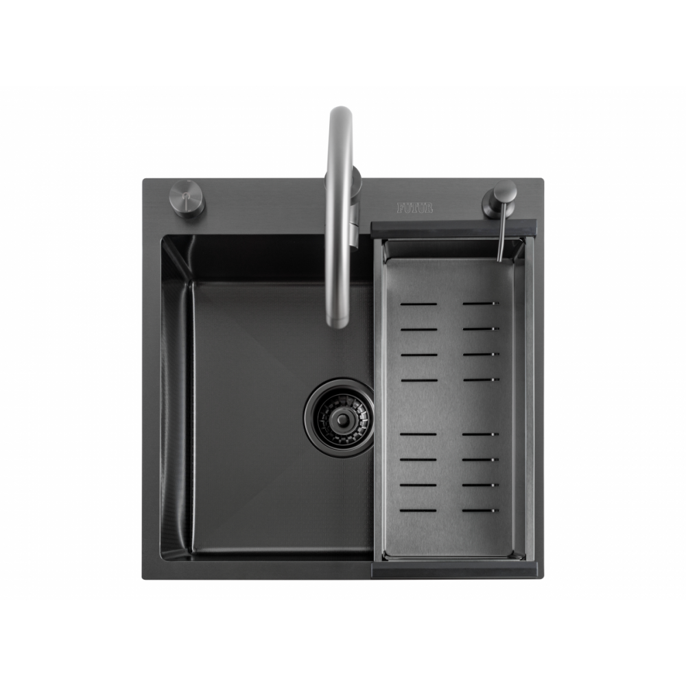 Кухонная мойка FUTUR FK 5050 Eco Embossing Pop-up Mixer plus (Black Nano)