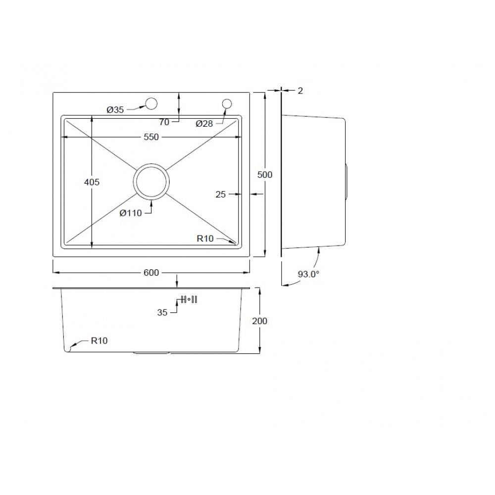 | Отверстие под смеситель | есть |