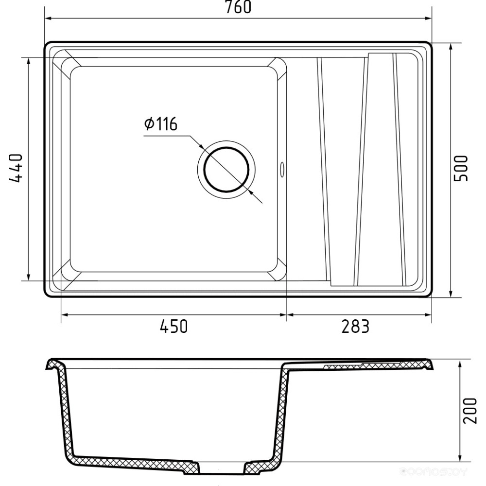 Ширина мойки: 76 см