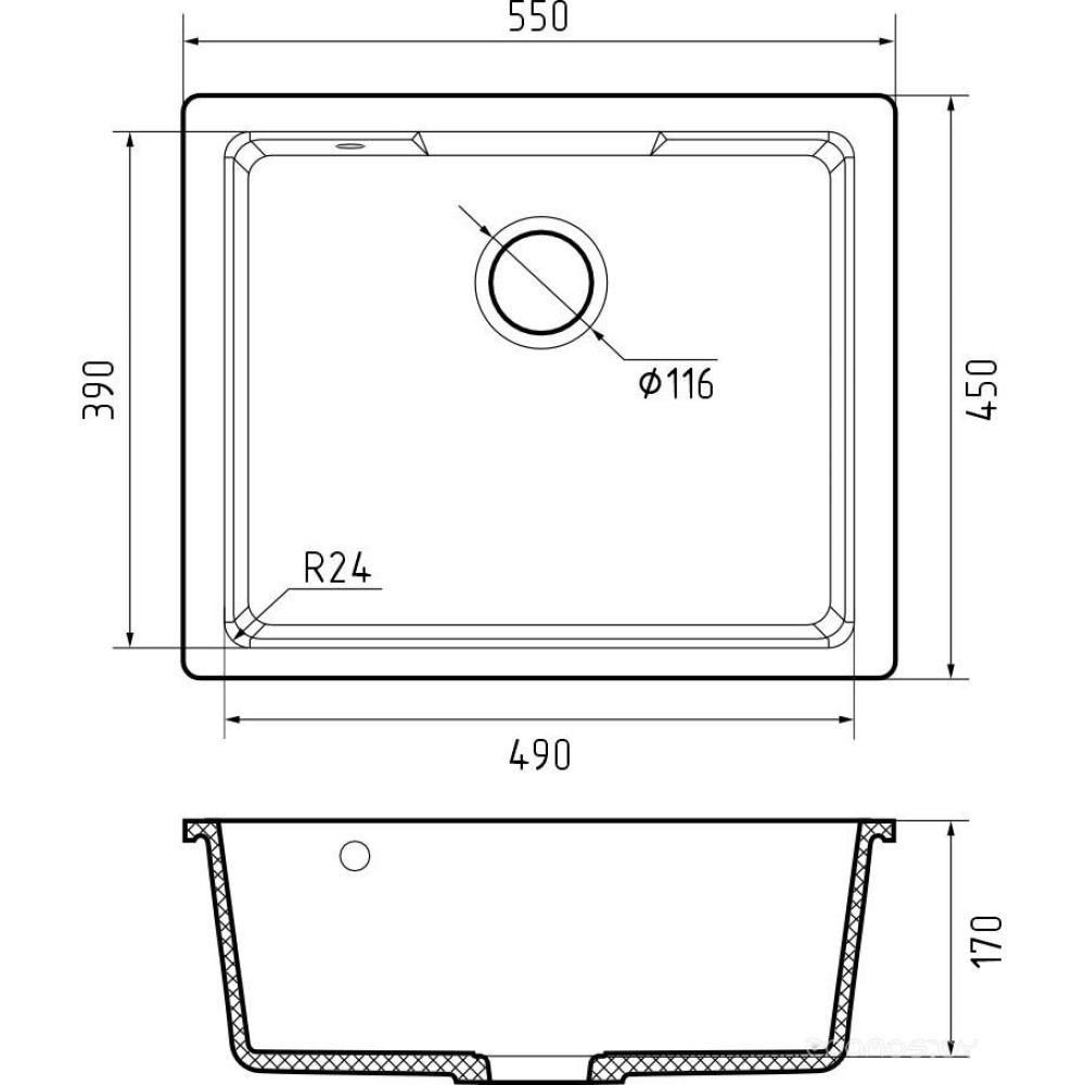 | Установкапод столешницу | Формапрямоугольная |