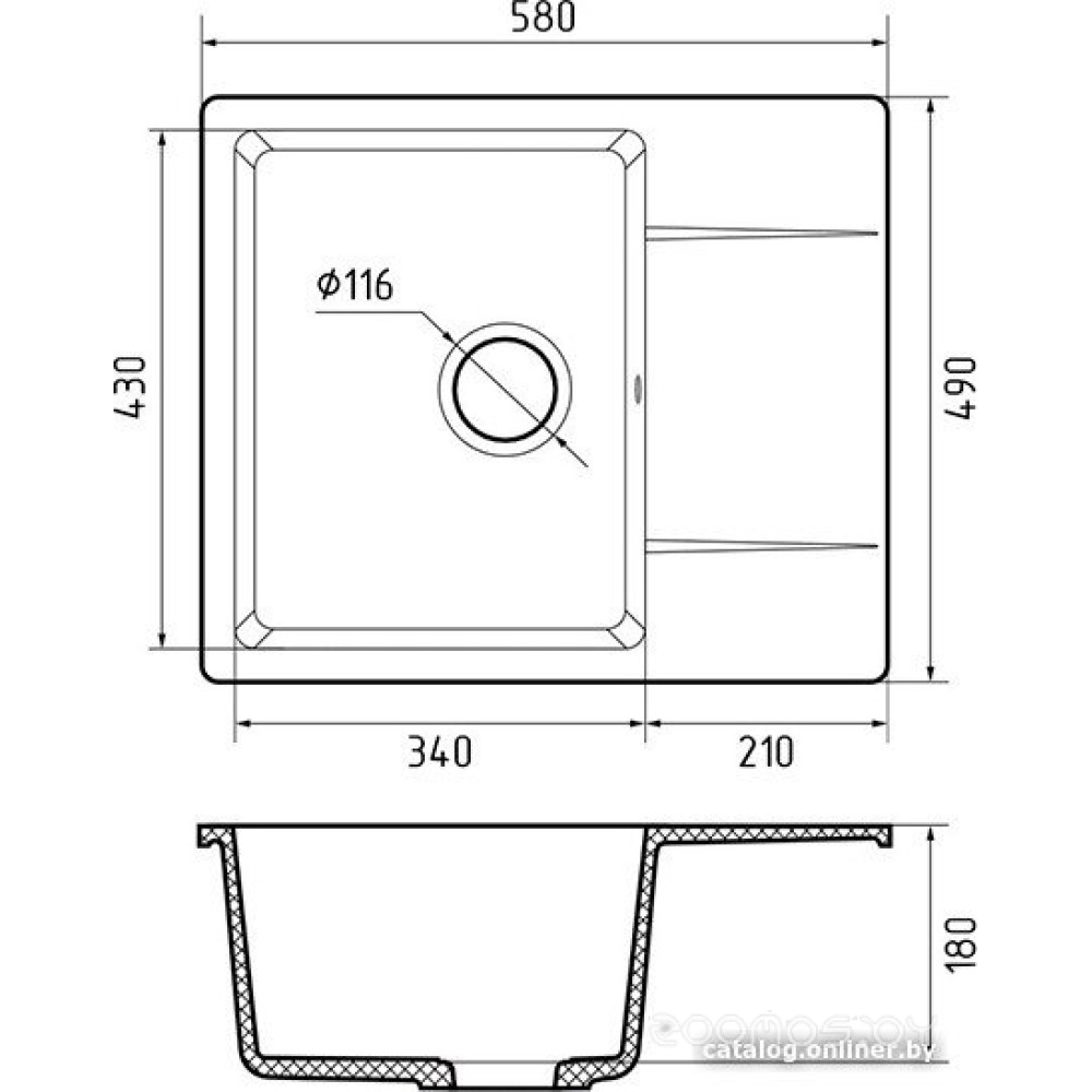 | Ширина мойки | 58 см |