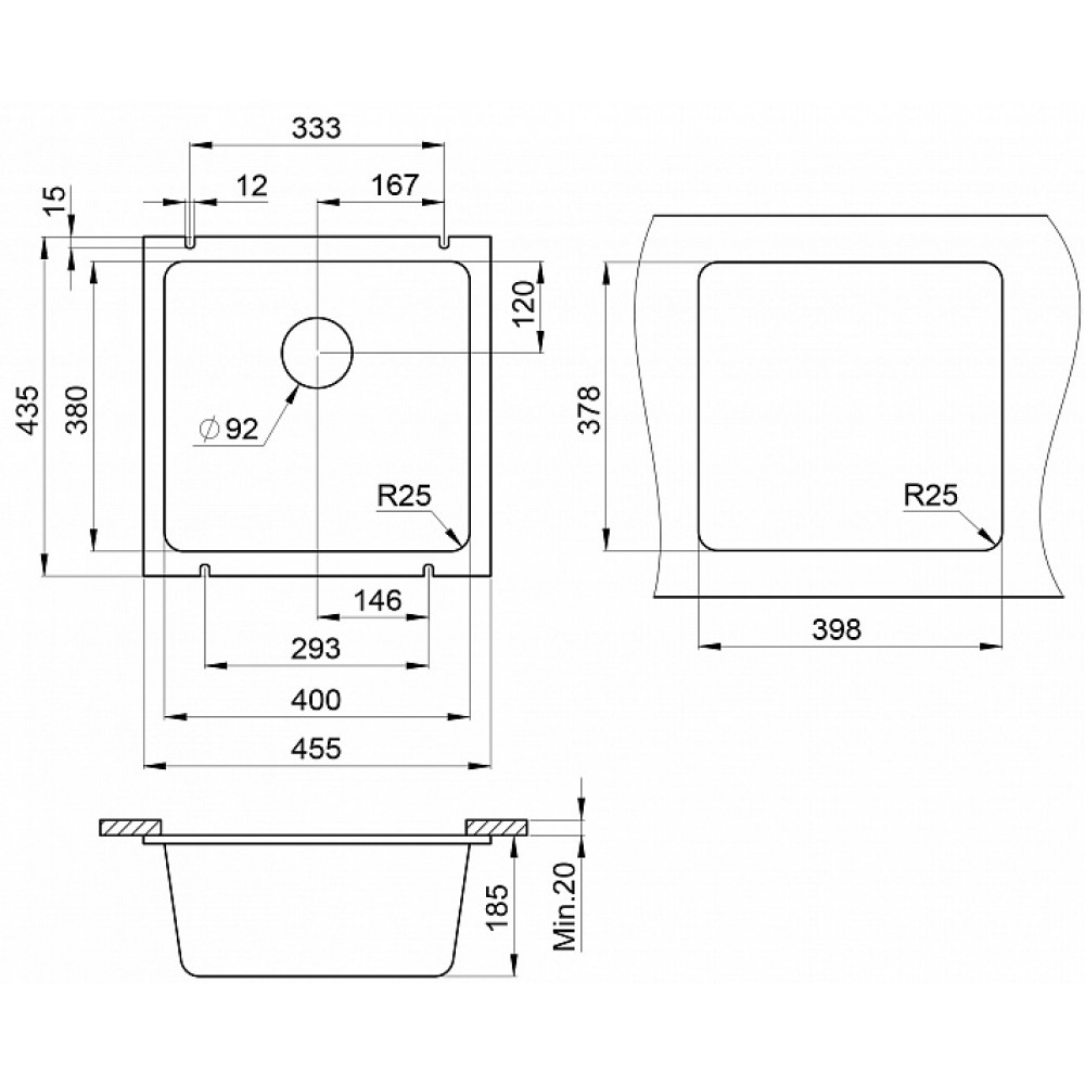 Технические характеристики Кухонная мойка Granula 3801 алюминиум