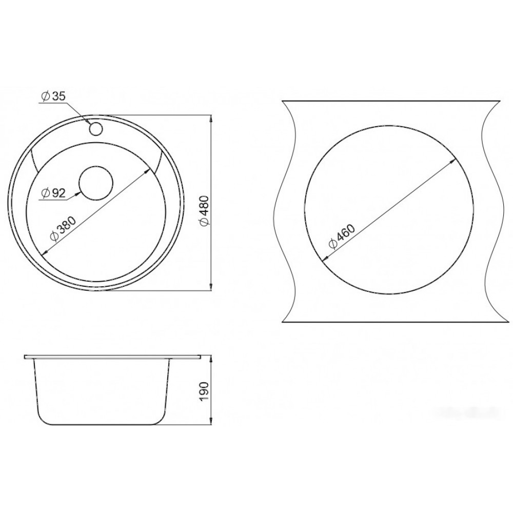 Диаметр сливного отверстия: 3.5 "