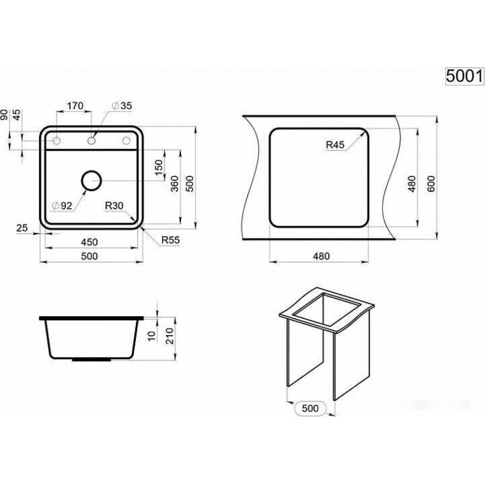 Технические характеристики Кухонная мойка Granula 5001 (черный)