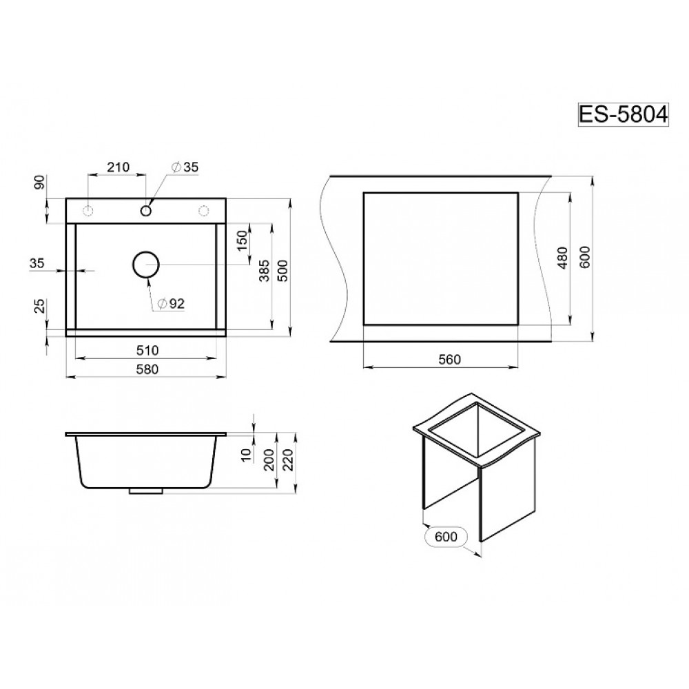 Технические характеристики Кухонная мойка Granula 5804 черный