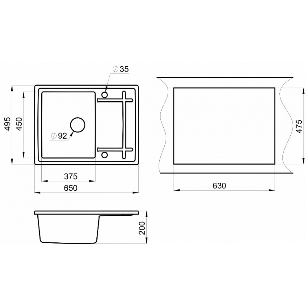 | Ширина50 см | Ширина монтажного отверстия под мойку63 см |