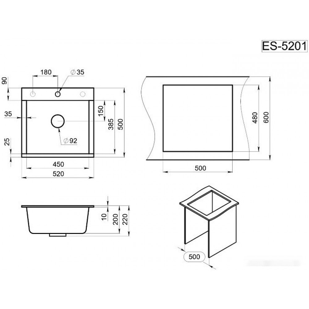 Технические характеристики Кухонная мойка Granula ES-5201 (шварц)