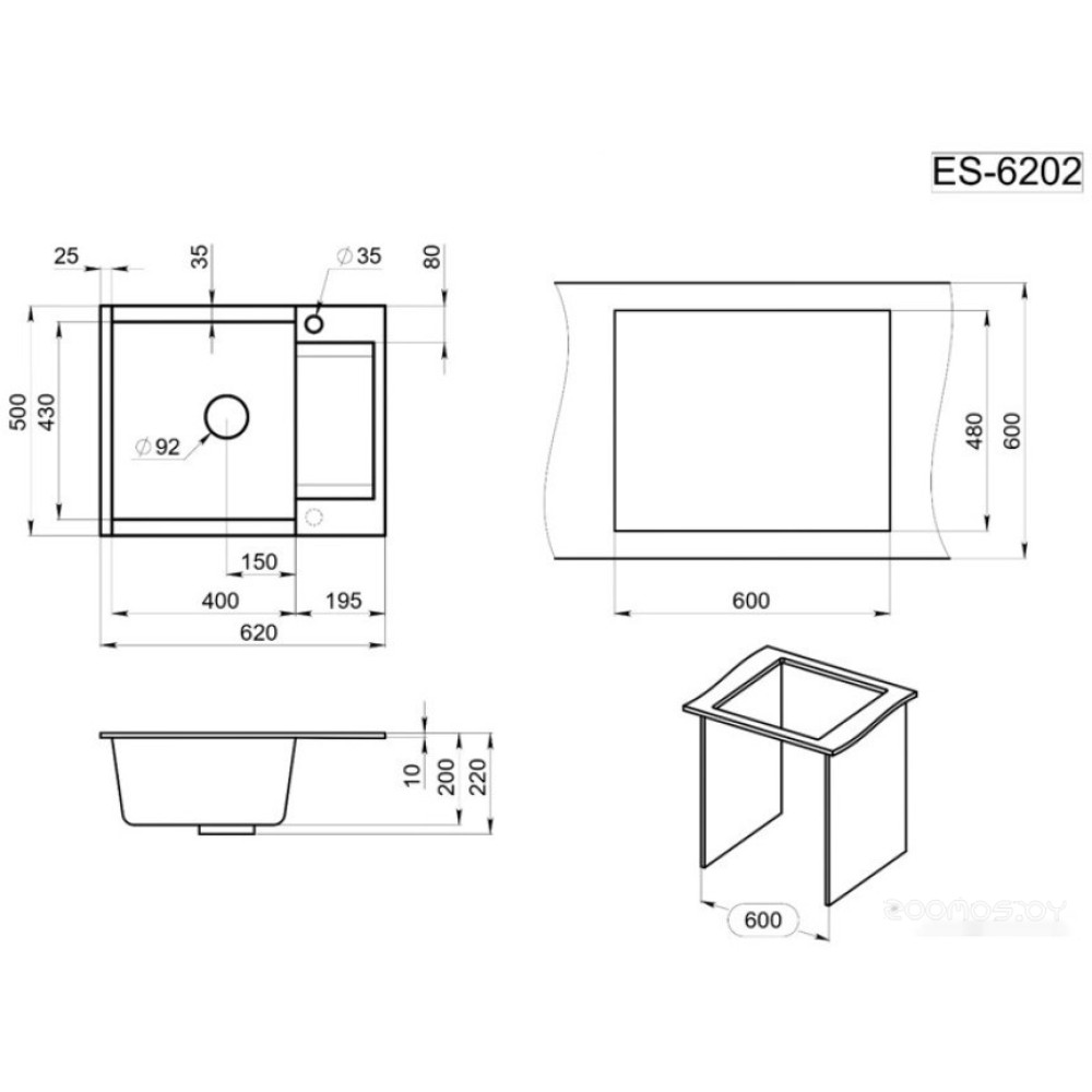 Технические характеристики Кухонная мойка Granula ES-6202 (турмалин)