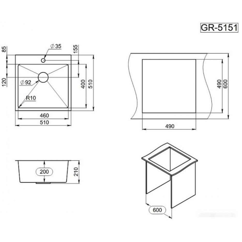 Описание Кухонная мойка Granula GR-5151 (графит матовый)