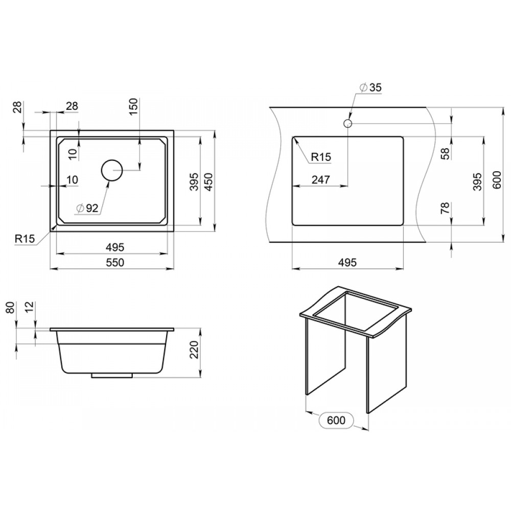 Ширина мойки: 55 см