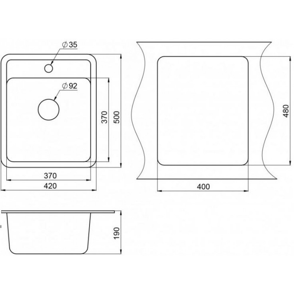 | Ширина50 см | Ширина монтажного отверстия под мойку40 см |