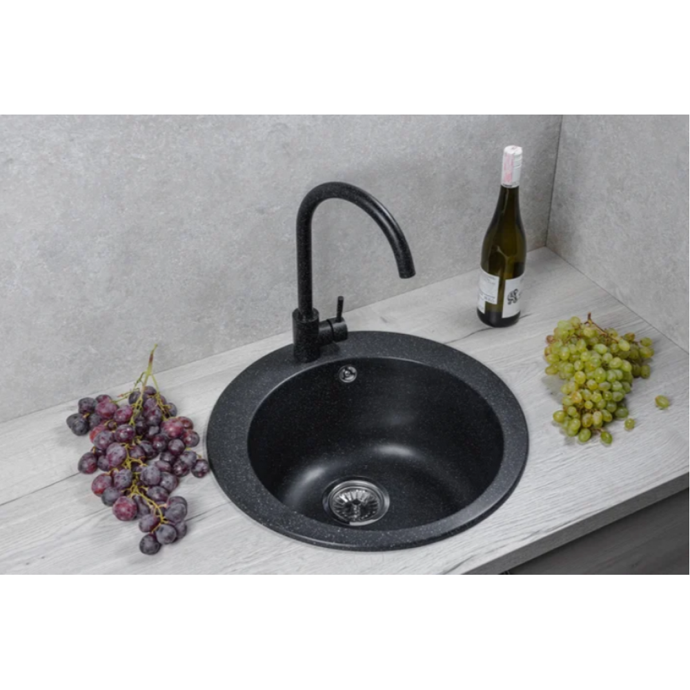 Описание Кухонная мойка Marblan Orbi (черный,с сифоном)