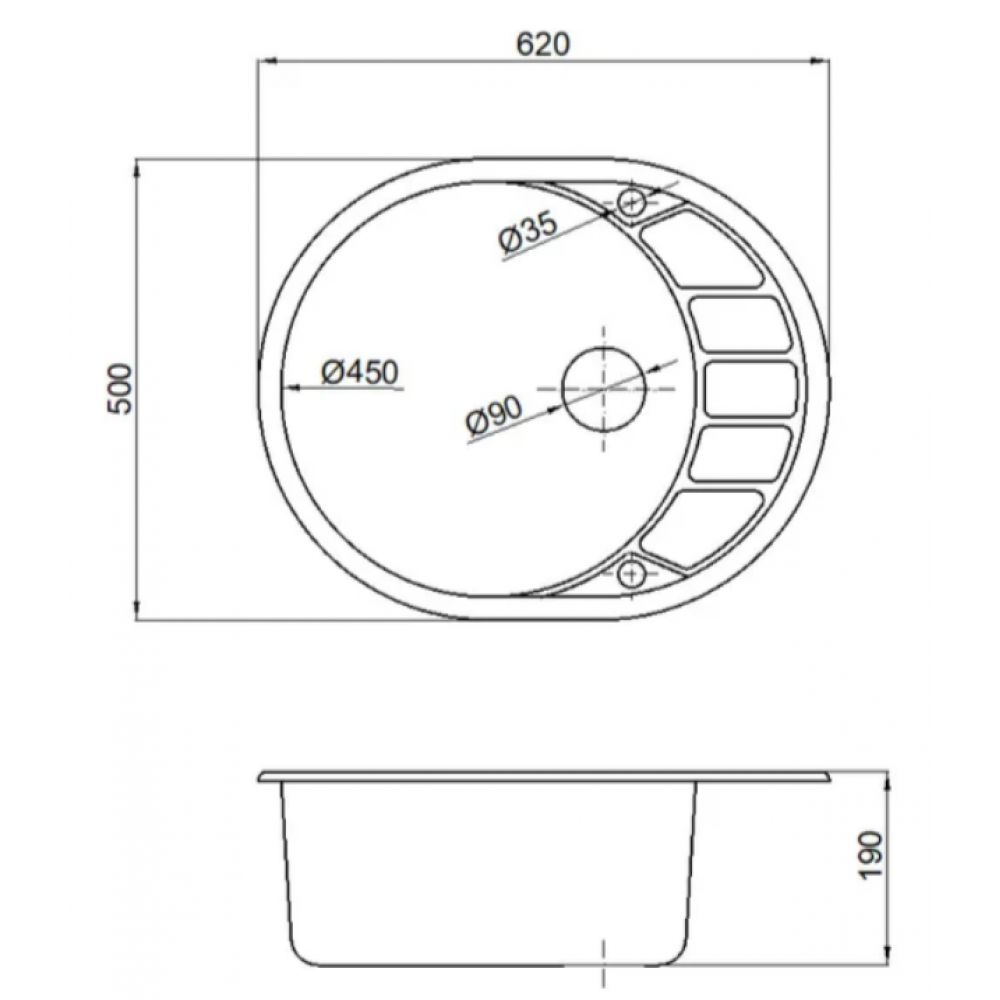 Технические характеристики Кухонная мойка Marblan Ovata R (серебристый,с сифоном)