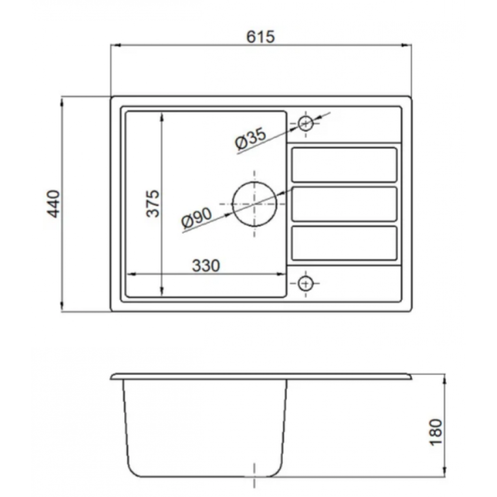 Технические характеристики Кухонная мойка Marblan Recta R (гранит, с сифоном)