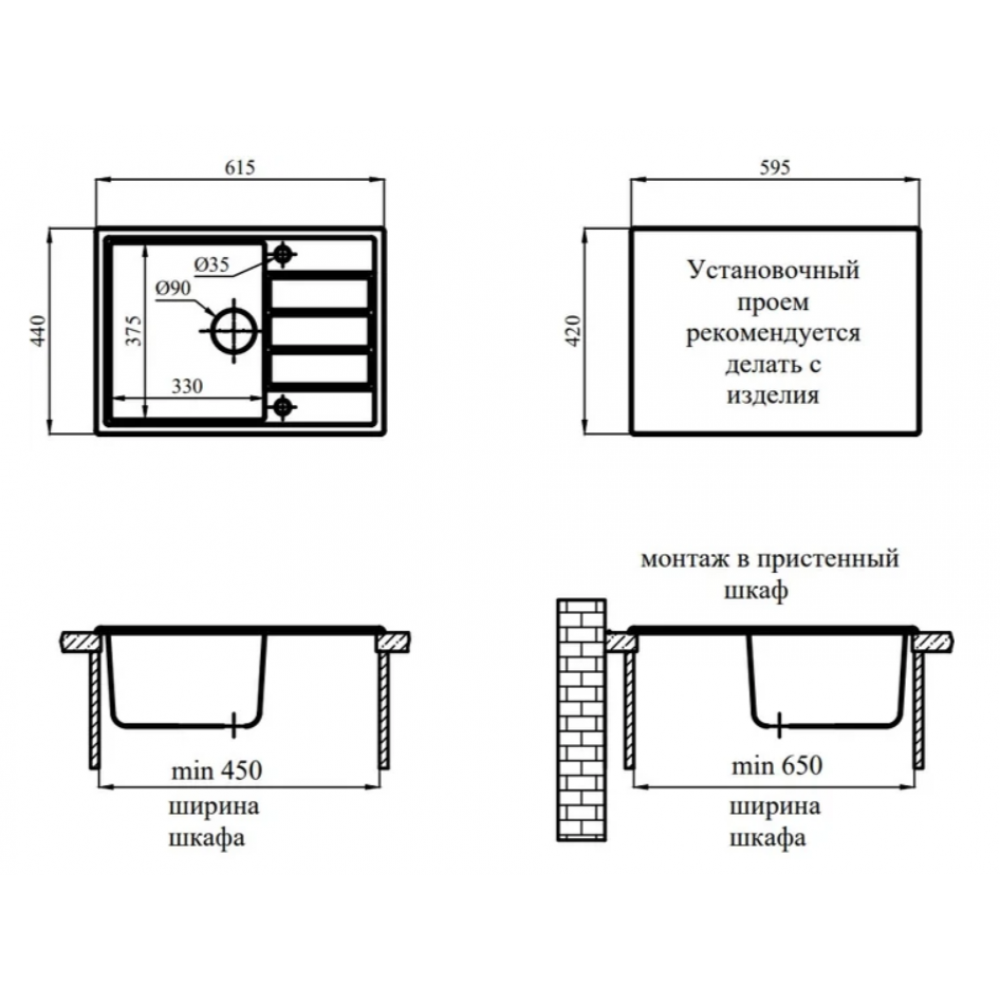 | Установка | над столешницей |