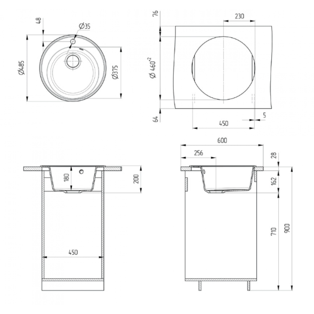 | Установкапод столешницу | Формаовальная |