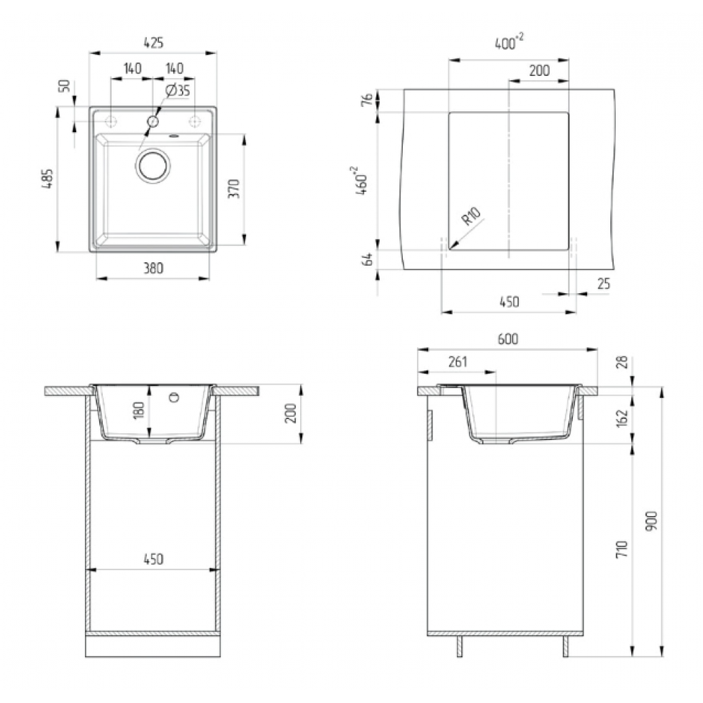 Описание набора: Мойка, сливная арматура + гофротруба, технический паспорт и гарантийный талон