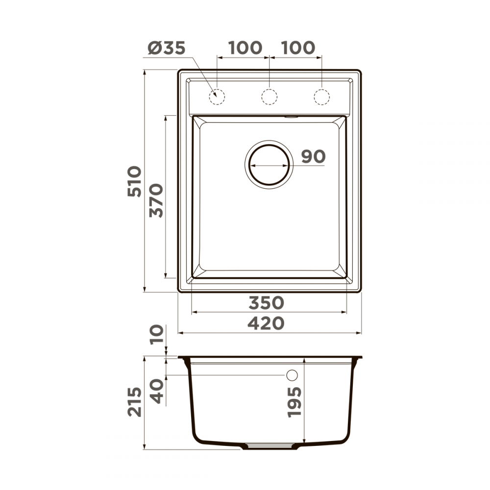 Ширина мойки: 42 см