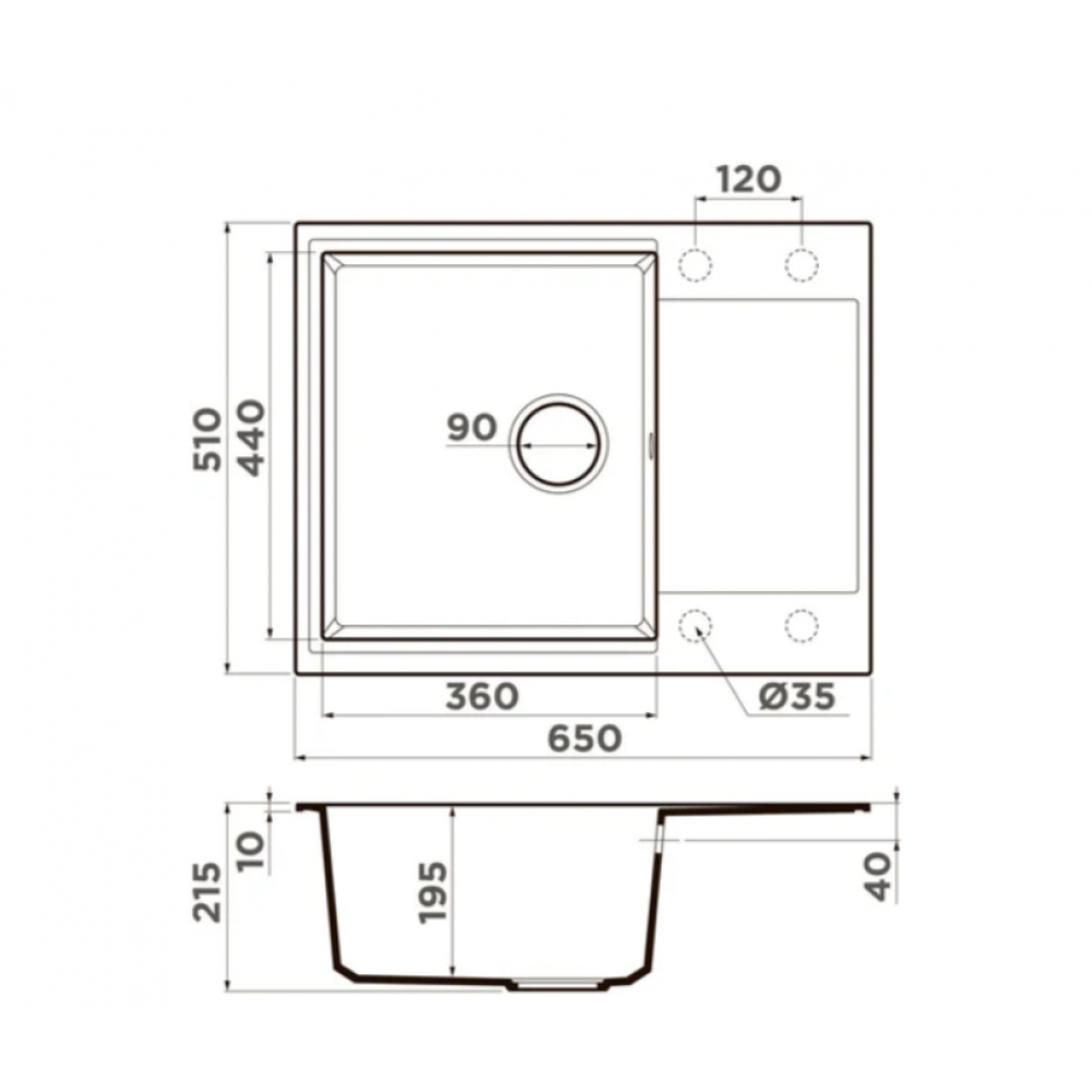 Ширина мойки: 65 см