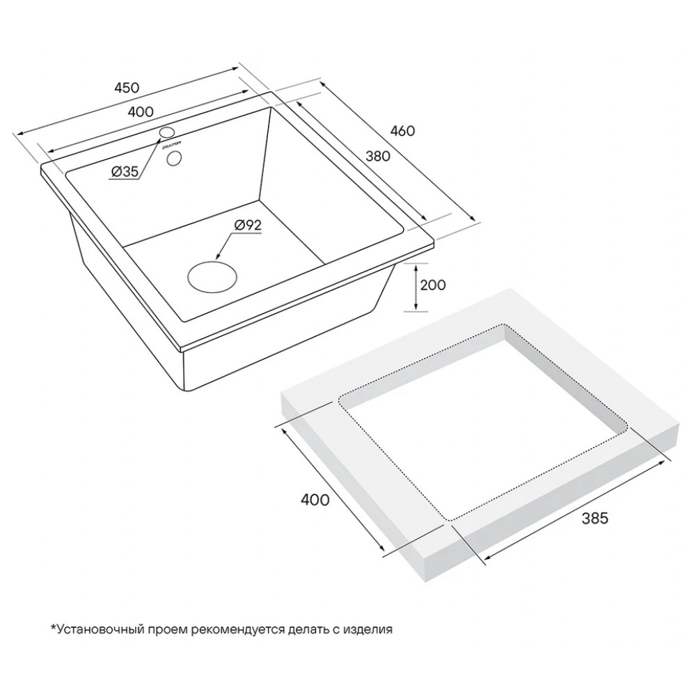 | Установкавровень со столешницей под столешницу над столешницей | Формапрямоугольная |