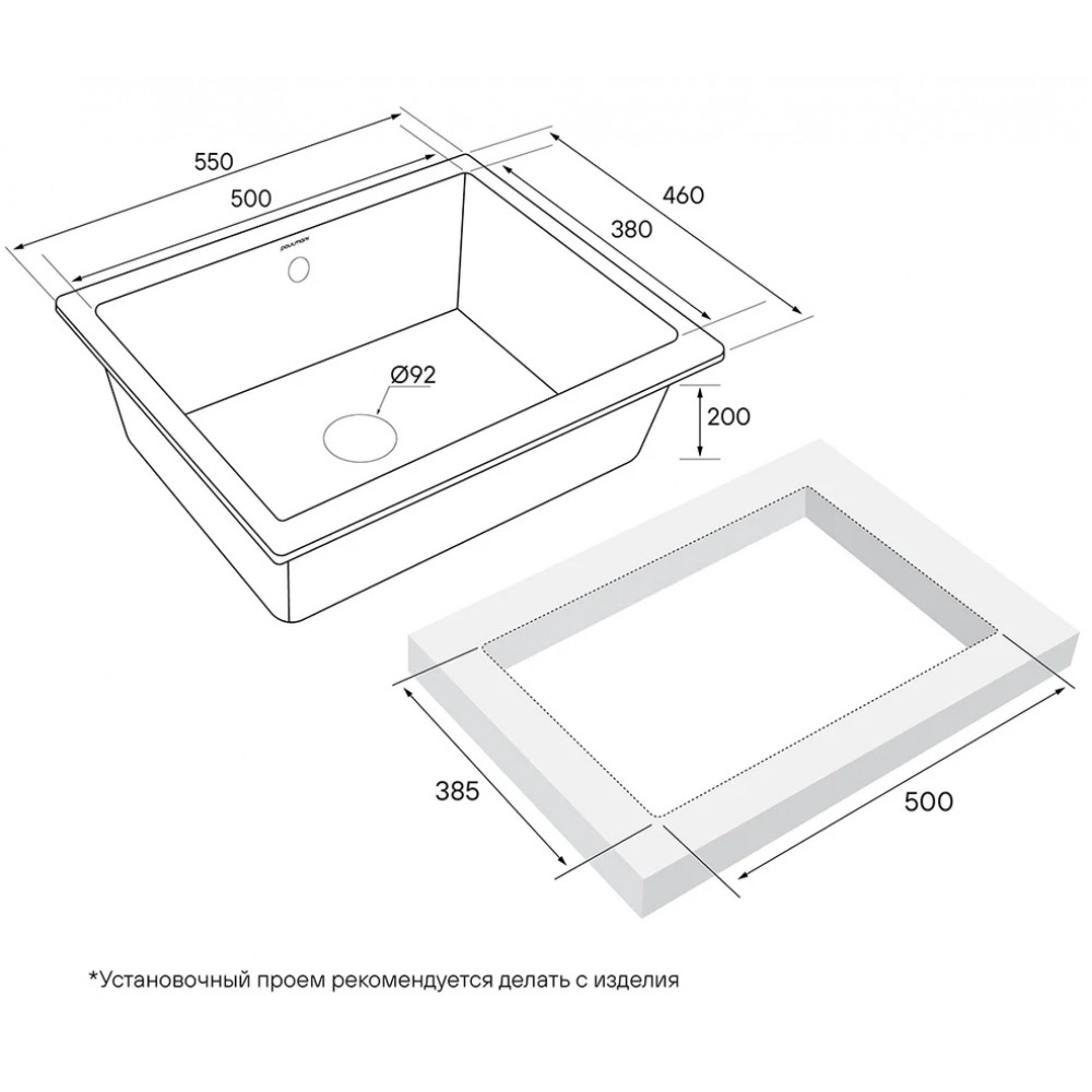 | Установкавровень со столешницей над столешницей под столешницу | Формапрямоугольная |