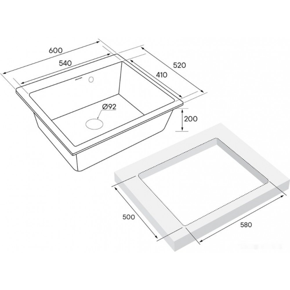 Технические характеристики Кухонная мойка Paulmark Kante 60 PM106052-BE