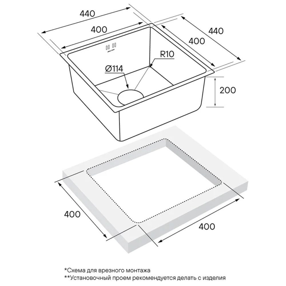 Установка: над столешницей, под столешницу