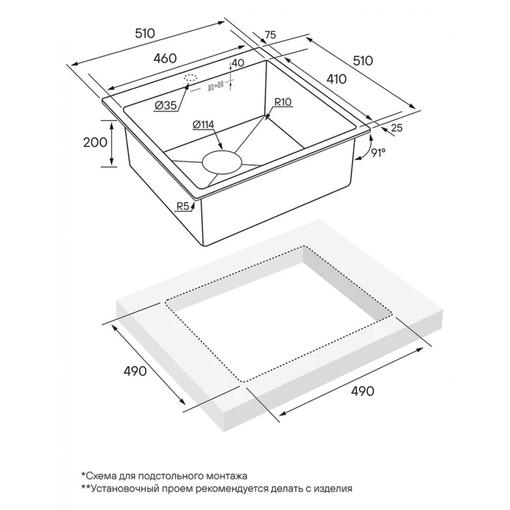 | Установкавровень со столешницей под столешницу над столешницей | Формапрямоугольная |