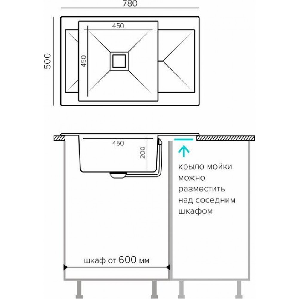 Ширина мойки: 78 см